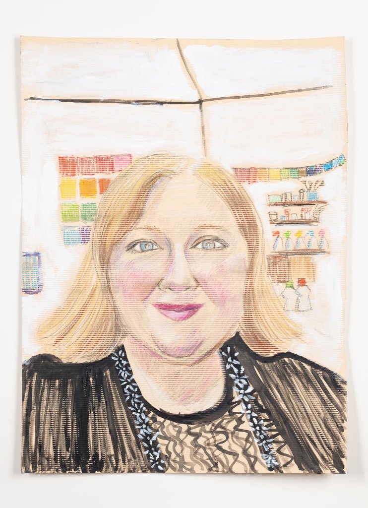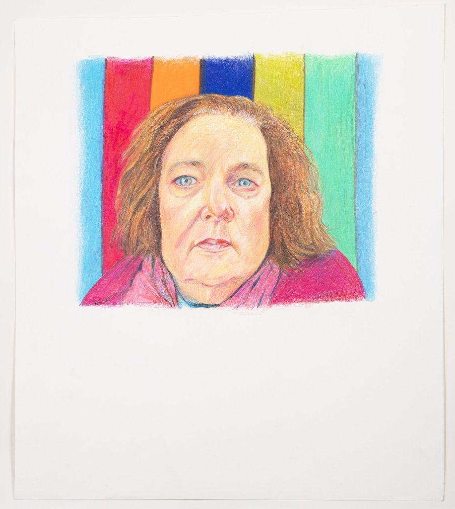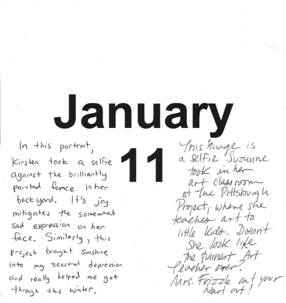 “In this portait Kirsten took a selfie against the brilliantly colored fence in her backyard. It’s joy mitigates the somewhat sad expression on her face. Similarly, this project brought sunshine into my seasonal depression and really helped me get through this winter.” – Suzanne Werder