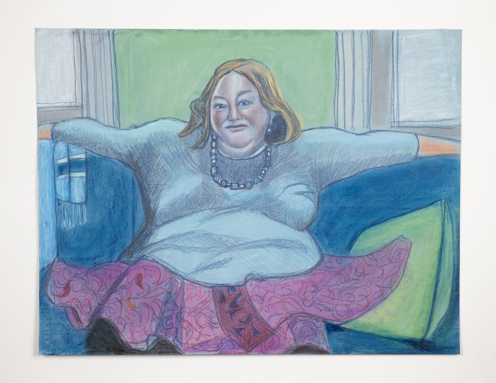 “This portrait of Suzanne is one you rarely see within images of women in art. She’s sitting like a man, legs splayed, arms outstretched, as if she owns the world, no apologies. I love the juxtaposition of her flowery, feminine skirt. How often as women do we allow ourselves to take up space ?”