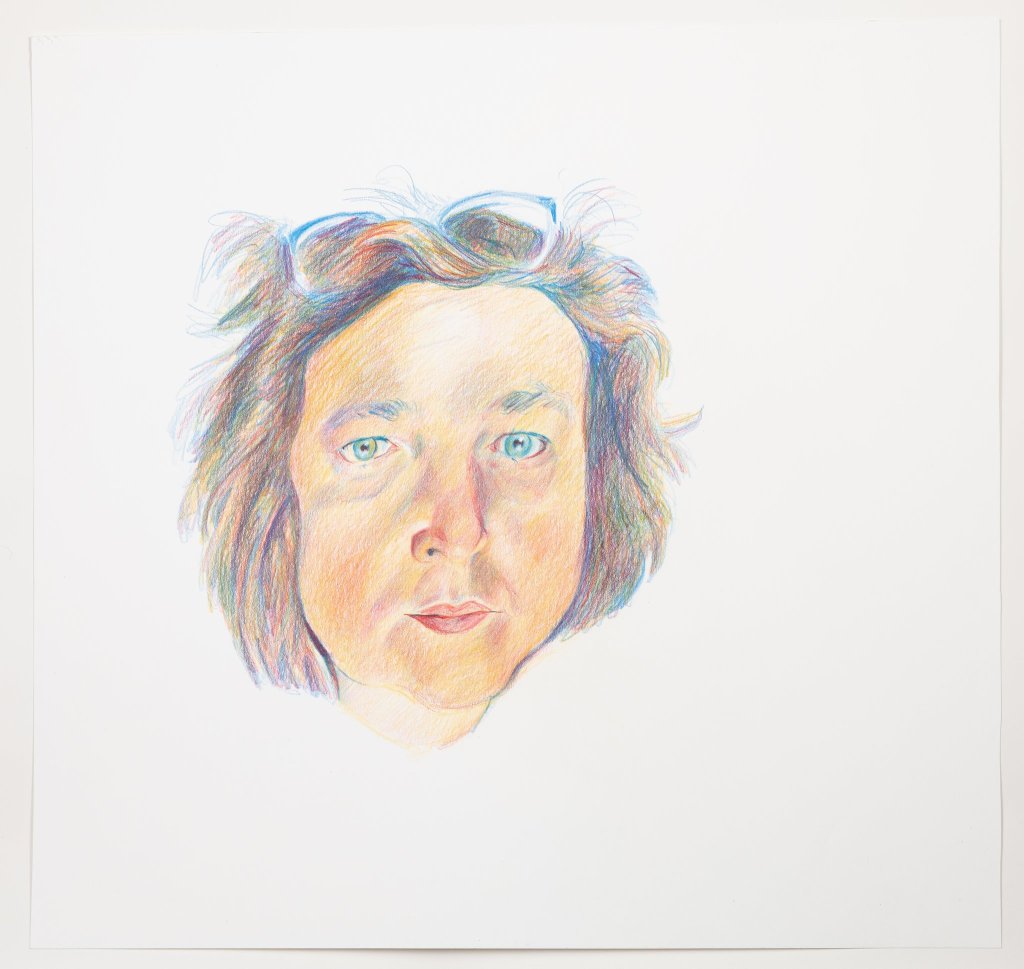 “For this portrait based on a selfie, I limited myself to using one red, one blue and one yellow colored pencil.”