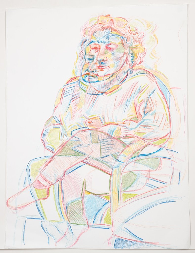 “As I was drawing this Kirsten was on her phone and was not sitting very still. I drew her movements and abstracted them.”