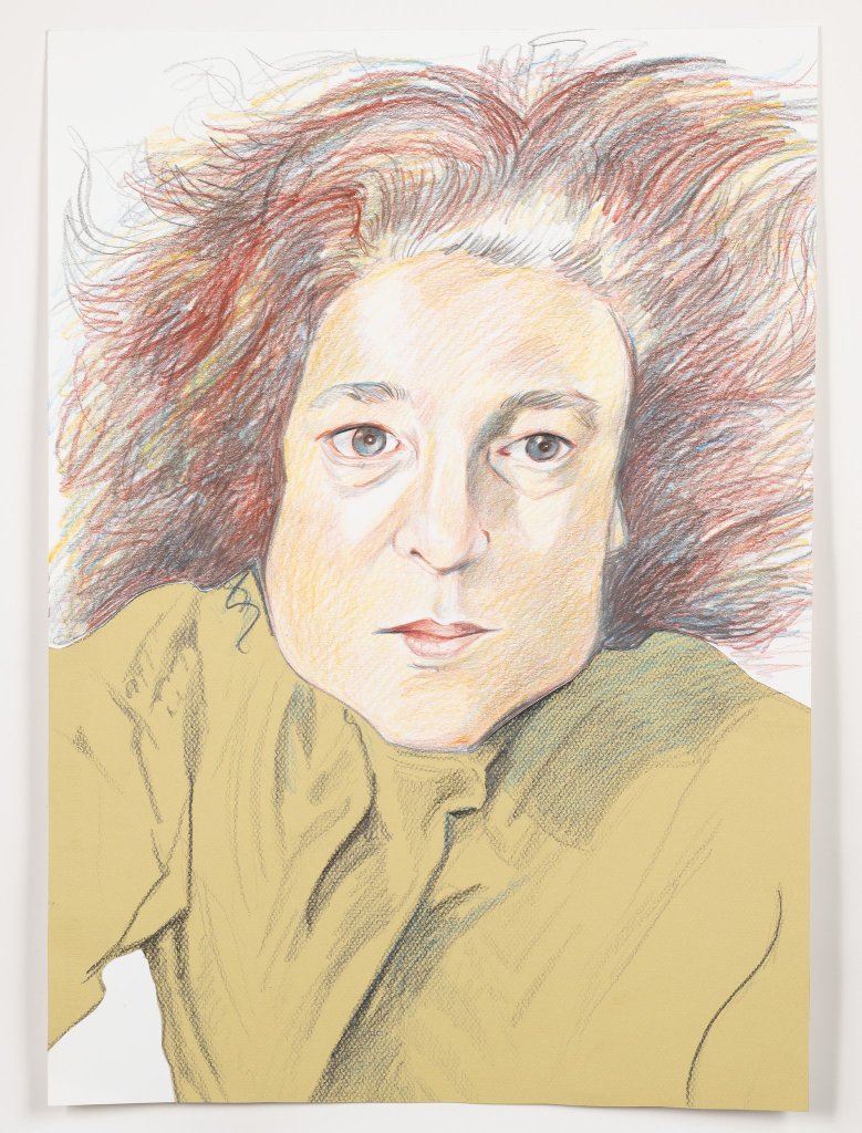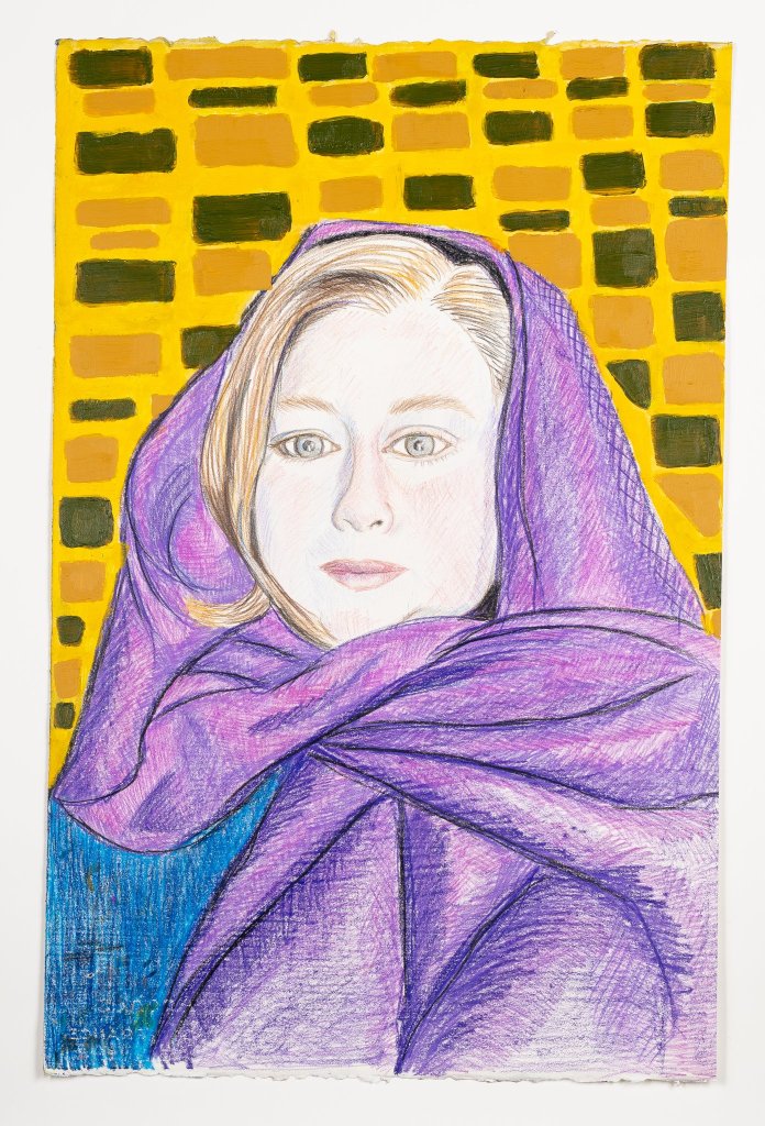 “I collaged Kirsten’s shirt from another piece of paper. I adore the wildness of her hair and it’s many moods. This is the first day that we didn’t meet because I got COVID.”