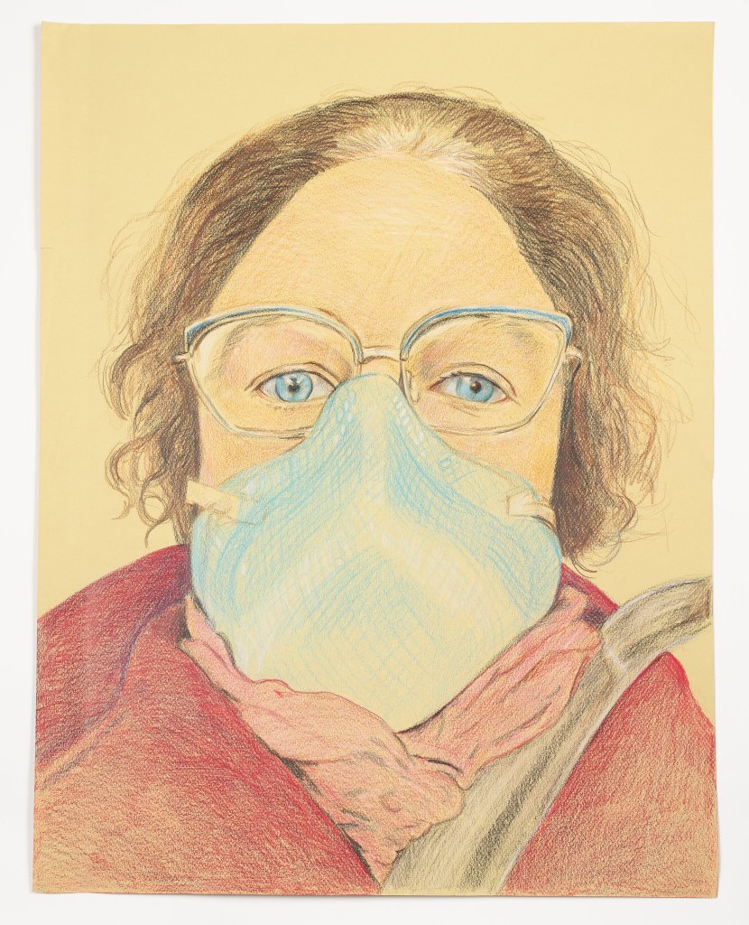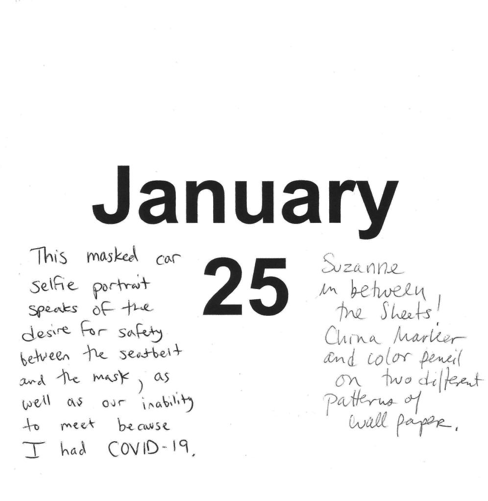 This masked car selfie portrait speaks to the desire for safety between the seatbelt and the mask, as well as our inability to meet because I had COVID-19.