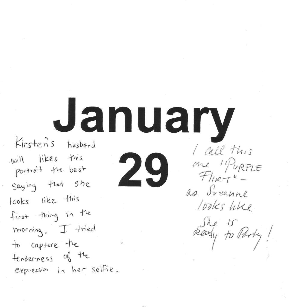 “Kirsten’s husband Will likes this portrait best as he says this is what she looks like first thing in the morning. I tried to capture the tenderness of her expression in her selfie.” – Suzanne Werder