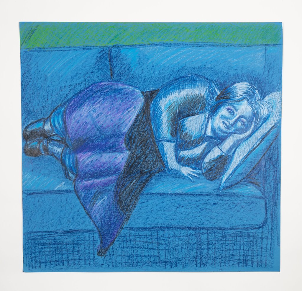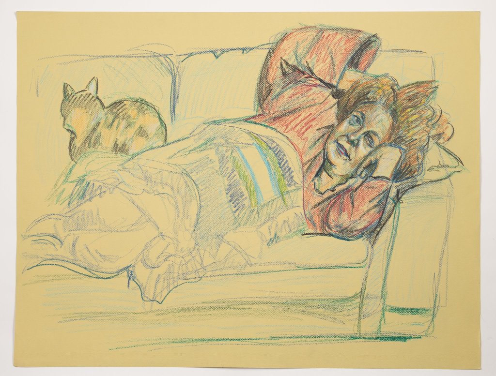 “I used mostly china marker on this one. I enjoy our parallel poses. I really enjoy the looseness of Suzanne’s portrait of me – and the fact that my cat is in it.” – Kirsten Ervin